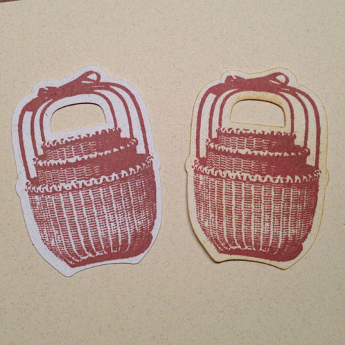 Since I already had the shape of the basket stamp drawn using Adobe Illustrator and brought into the eCal software that came with my eClips machine I was easily able to cut a sheet of shadows out of purple card stock.