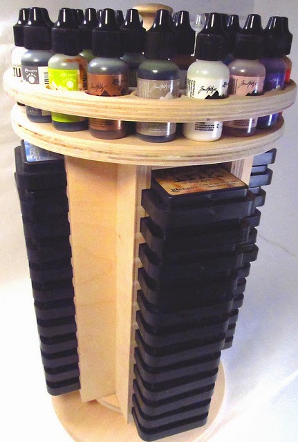 So a couple of years ago I was reading the blog of Jim the Gentleman Crafter and saw this cool ink storage unit. It is one is designed to hold Tim Holtz Distress Ink pads and Adirondack Alcohol Ink bottles. At the time I was just starting to use Distress Ink, so didn't have that many colors, but still thought this was a pretty swift storage option.